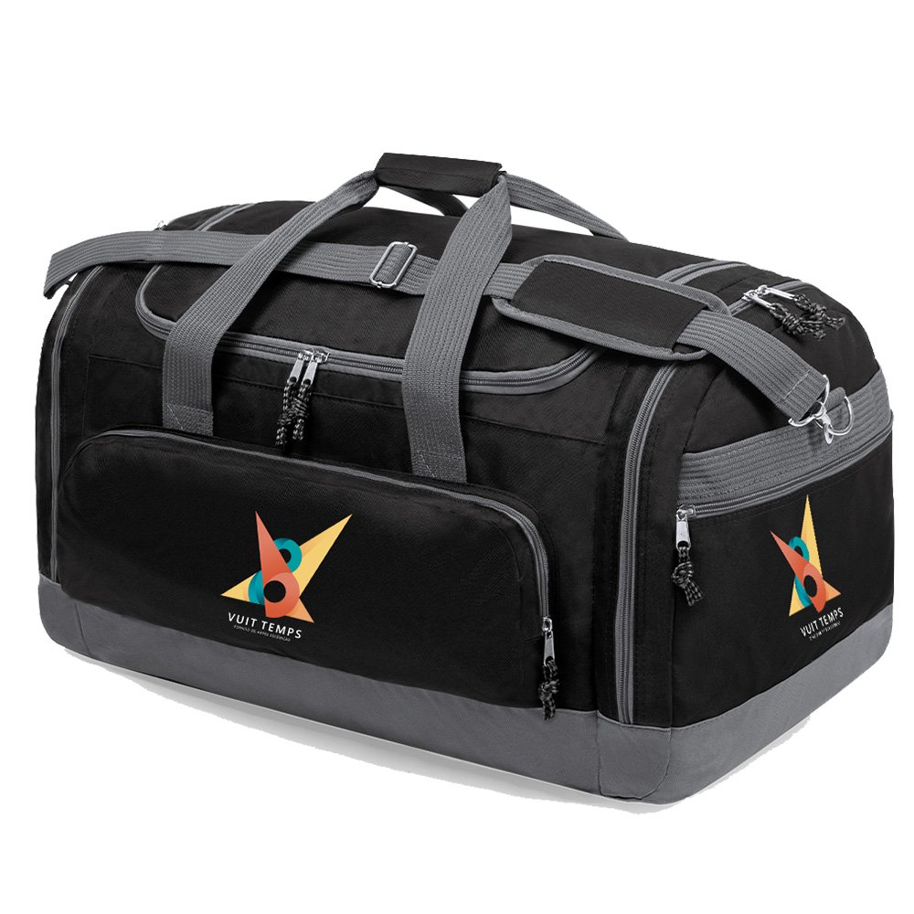Bolso multiusos de gran capacidad en resistente poliéster de diseño bicolor, con base y detalles en color gris.